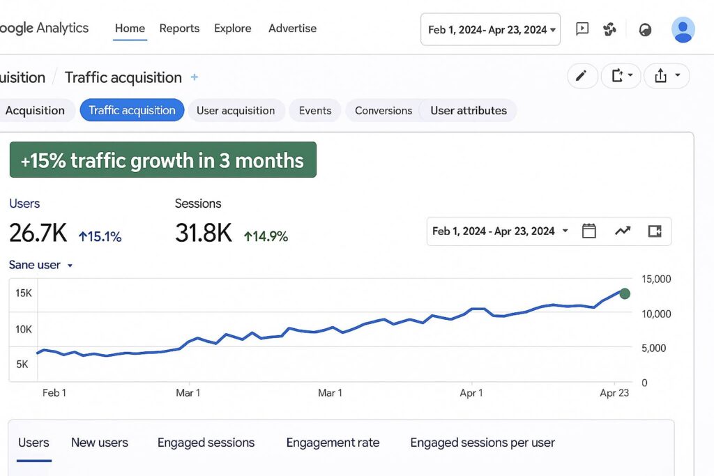 | Hasil 3 Bulan | Trafik naik 5% (bouncing) | Trafik naik 40% (sustainable) |