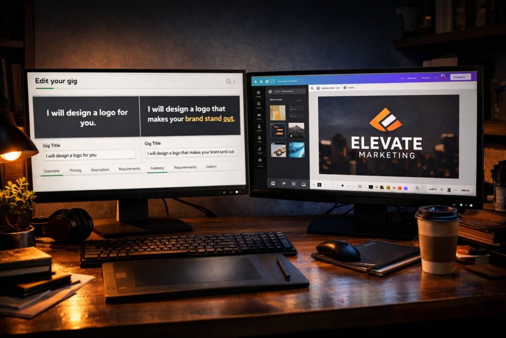 Fiverr pernah update algoritma di Q3 2023: keyword dalam deskripsi sekarang punya bobot lebih besar untuk relevansi pencarian. Jadi jangan cuma di tag, selipkan natural di paragraf pertama deskripsi. Contoh: “Saya spesialis minimalist logo design untuk startup tech. Pengalaman 5 tahun di brand identity…”