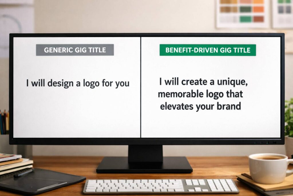 Contoh konkret: seorang client cerita cari “minimalist logo design”. Dia klik gig dengan judul “I will create modern minimalist logo design for your brand”. Tapi setelah scroll, dia malah order dari gig berjudul “I will design a simple logo that sells”. Judul kedua lebih “click-worthy” dan langsung ada portofolio yang nyakitin mata (dengan baik). Ini bukti kalau Fiverr juga prioritaskan CTR dan conversion.