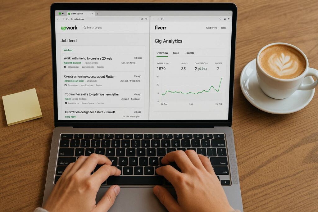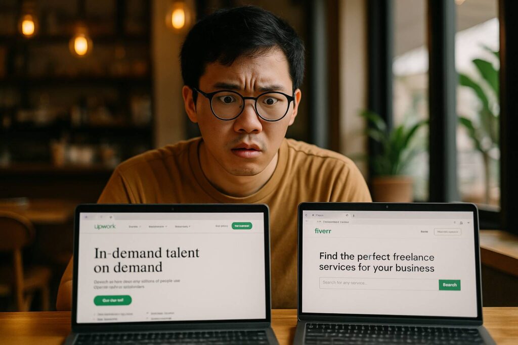 Lo daftar platform freelance, profil diisi lengkap, skill di-list semua, terus… diam. Notifikasi kosong melompong. Sound familiar? Pertanyaan “Upwork vs Fiverr yang mana duluan bikin kantong tebal?” itu valid banget, tapi jawabannya nggak hitam-putih. Saya pernah ngerasain dapet job pertamaku di Fiverr dalam 3 hari, sementara di Upwork butuh 3 minggu ngantorin 27 proposal. Tapi di titik lain, temen saya malah sebaliknya. Ini bukan soal mana yang lebih cepat, tapi mana yang lebih cocok dengan cara kerja lo.
